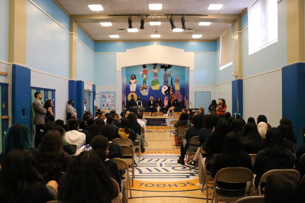 The student moderators–Nina, Taylor, Chaise, and Tahira–led the interview and asked questions about her experience as First Lady, what inspires her, and her thoughts on cyberbullying and disability rights–both important issues that Macron has committed to addressing. Following the discussion, Mrs. Macron was presented with a copy of It’s All About the Girls, a commemorative book celebrating 25 years of The Young Women’s Leadership Schools and its amazing community.