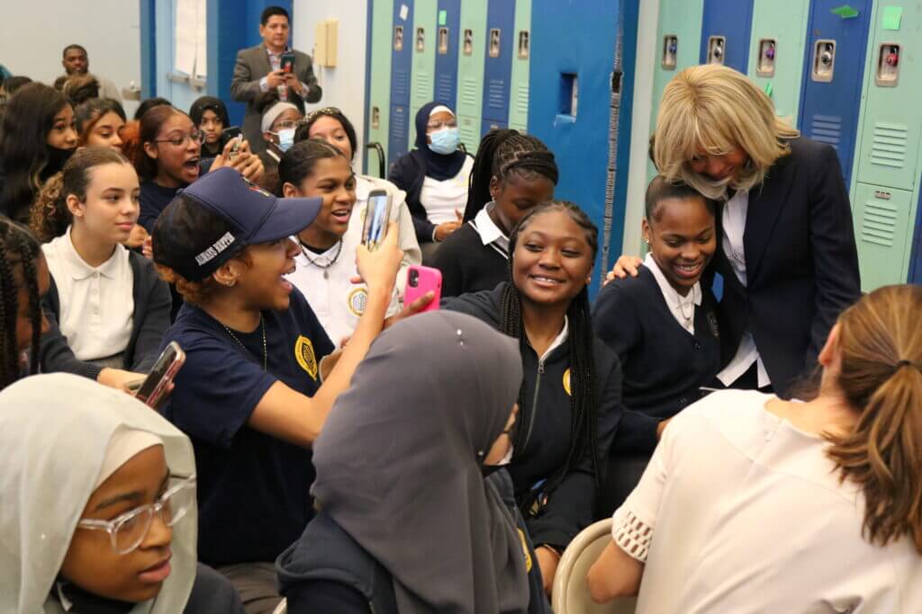 This fall, TYWLS East Harlem had a visit from a special guest, First Lady of France, Brigitte Macron. A life-long educator and advocate for girls’ leadership, First Lady Macron, toured some of the classrooms, met with teachers and students, and engaged in a discussion with the tenth-grade class.