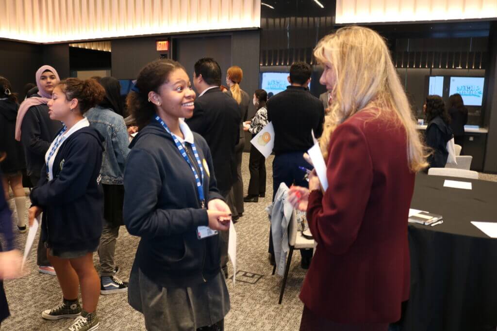 TYWLS at the Workplace is a signature volunteer event that coordinates a meaningful day of connection and networking for students at partner companies. Throughout the day, students get to meet employees from the company, learn about their jobs, and what it’s like to work there. Deutsche Bank has been a longtime partner in hosting TYWLS at the Workplace–the latest event was their eighth time hosting the event since 2014!